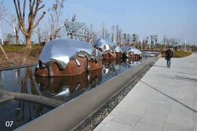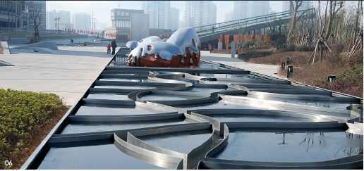 对于城市居民而言,公共雕塑比起美术馆内展览的作品,有更好的条件与观众进行精神上的沟通。中国当代雕塑目前正在逐步地剔除圈子艺术的屏障,走出艺术馆的围墙,从当代艺术创作的观念中整体的移植到公共空间中。当代城市雕塑与传统的纪念性雕塑最大的区别在于强化与人的生存环境、观众的心理因素和精神需求之间的互动关系。人的生存环境包括了社会、政治环境,也包括了自然生态和人为环境,都是以人为主的精神活动空间。当代城市雕塑所蕴含的精神空间中既是从这些活动空间中抽取出来的,又同时是属于这部分空间之中的。两者关系是辨证的关系。艺术家的个体精神价值体现需要从艺术家的心理和整个文化价值出发,给当代中国城市雕塑艺术带来一种新鲜的感觉,而观众的心理因素在于观众自身也是处在于整体环境中,在面对视觉文化的警示时同样以行动作为反馈,作品与人之间形成了循环流动式的交替运动。利玛窦广场由于主题定位确定了其文化背 景的唯一性,但综合性广场的业态要求又要体现出多重性,抽象造型的艺术形态巧妙的使原文化得到了无限的扩张,广场的视觉效果也在两者的推动下得到了多重体现。