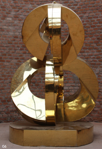 在我看来,金属雕塑是艺术家五种力量或才能的结果。即雕塑造型的艺术能力、传统手工艺的动手能力、现代金属加工技术的运用能力、对金属材料特性的理解与感悟能力、从观念形态进行金属材料结构组合的能力。其中,对材料的感受能力以及根据材料特性进行抽象性的空间思维与造型能力是关键的基础要素。雕塑家在创作加工的过程中,既是辛勤劳作的工人,也是具备艺术感悟和想象力的艺术家,他尊重材料的特性即尊重金属材料的物理特性,但也尊重自己在创作过程中的艺术想象和灵感突现的偶发创意。他既尊重艺术作品的自在性,也尊重自己的直观感受,将金属雕塑的创作过程转换成为一个充满创造性的快乐的人生体验。通过对金属材料的重新组合,完成对现代工业社会与消费时代的物质性的阐释。