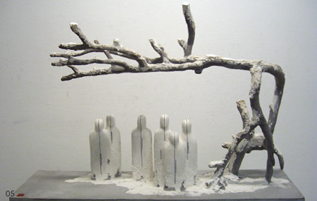 20世纪90年代以后雕塑开始活跃起来,这种活跃遭遇到观念艺术的进入。它从两个方面刺激了雕塑的活跃,一个方面是装置,以现成品为材料的作品开始影响雕塑家的创作,不再仅仅是材料的技艺性的架上的创作,现成物品介入到雕塑当中;还有一个就是关于公共艺术的讨论,随着中国社会的开放,公共艺术和个人创作开始产生密切的联系,怎样把艺术家个人的创作转换为公共艺术。而这两点对学院传统雕塑教学理念产生了冲击。公共性一旦提出,雕塑家就不再是一个独立的主体,必须要考虑和社会、和他人的平等的交流和相互的介入。反之因为装置、环境艺术的出现,雕塑的语言发生了某种变化,作为培养雕塑家的学院面临的挑战和问题开始出现。今天的雕塑应该坚持什么?开放性体现在哪儿?教学应该做怎样的调整?这个展览是一个比较纯粹的雕塑展览,没有太多的装置成分。研究性比较强,学院的气氛比较强。鲁美的作品不少是对人在不同精神状态和心理状态下面的形体上的反映,川美的创作思路放得比较开,个人的差距也比较大。两个学院不太相同的地方,留下了讨论的空间。在中国当下的文化情境里,特别是在市场、商业介入力度越来越大的情境里面,学院的艺术家有一个需要坚守的东西。学院实际上提供了一种保护机制,艺术家能够在某种程度上规避被市场完全控制,能独立地进行创作。艺术的价值是什么,其实就是艺术家作为个体,他的创造力能够得到社会认可。另外一个方面和当代文化情境发生了关系,针对中国当代现实的、文化的、精神的、生态的种种问题,然后通过艺术语言和个人智慧使这些成为呈现在艺术中的问题,成为精神生长的具有开启性的一个环节。